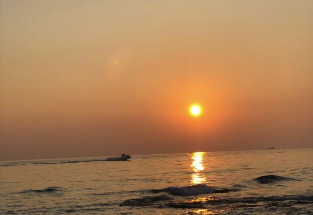 暮崖是潿洲島西北角最適合看落日的岬角,峭壁上是徒手攀爬上來的旅人,腳下是清澈見底的海水。日落時分晚霞倒映在水面,構成一幅恬靜的畫面。