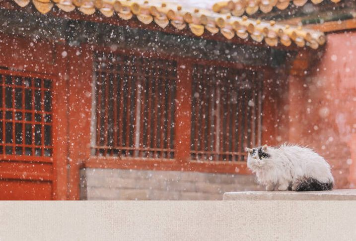 雪中的故宮,白雪鑲紅牆,碎碎墜瓊芳,一不小心就穿越到了千年之前。大雪紛飛,建築變得模糊,反倒好看起來。