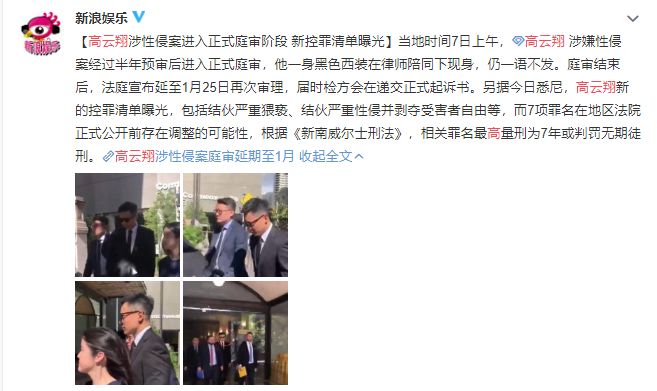 在黃子恒、鈕承澤之前,12月7日,因為涉嫌性侵,高雲翔在澳大利亞經過半年預審後進入正式庭審。一襲黑色西裝出現的他依然一語不發,法庭宣布延至1月25日再次審理,而高雲翔被指控的7項罪名如果成立,將面臨7年或者更長的刑罰。
