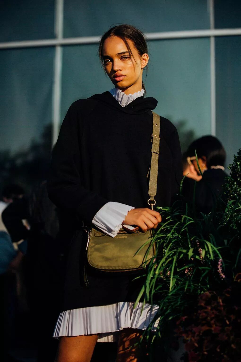 百搭的白襯衫無疑是與衛衣疊穿最穩妥不出錯的選擇。而有了衛衣的加持,亦能夠削弱白襯衫慣有的職場氣質,變得時髦又很有層次感。