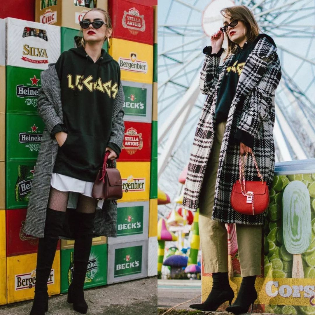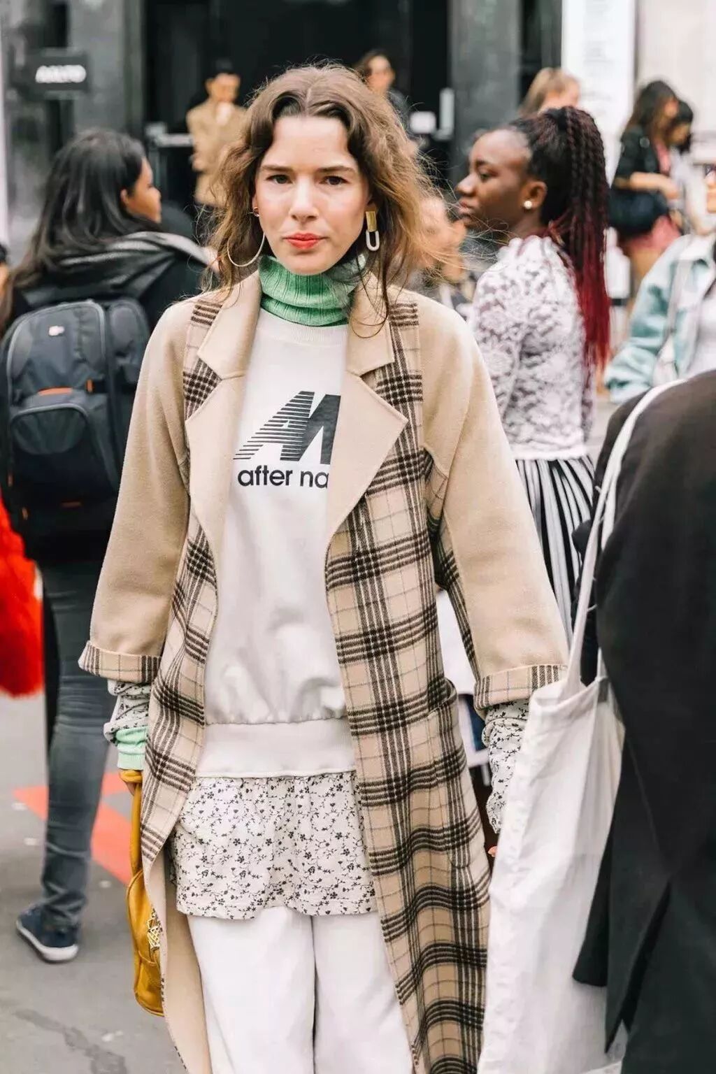 格紋大衣mix衛衣,打造出雅痞復古的街頭潮范。