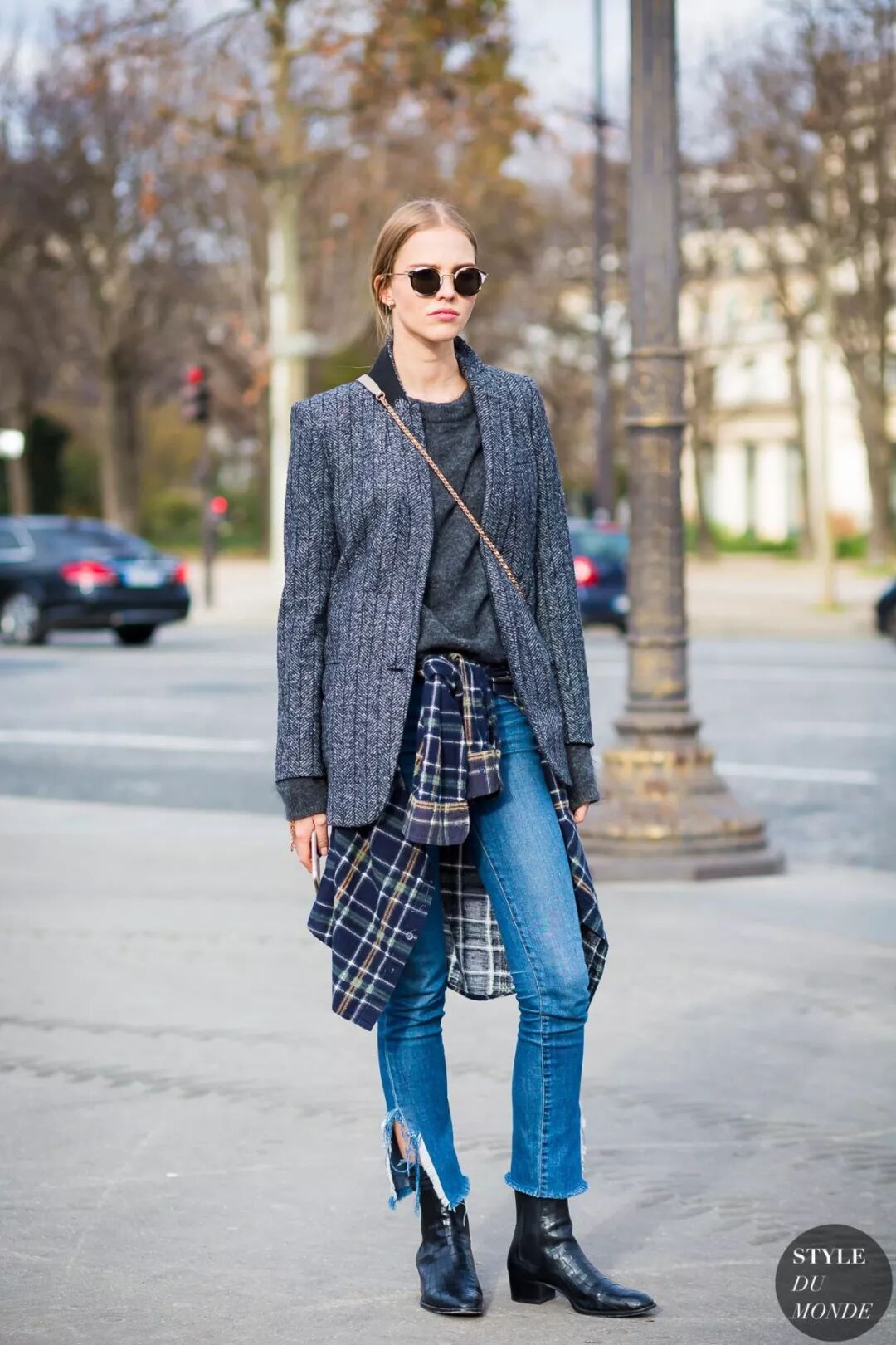 最好用短款的衛衣作為內搭並將羽絨服敞開穿,這樣能更好地強調高腰線,整個人在視覺上顯高挑了,自然也會看起來更苗條。