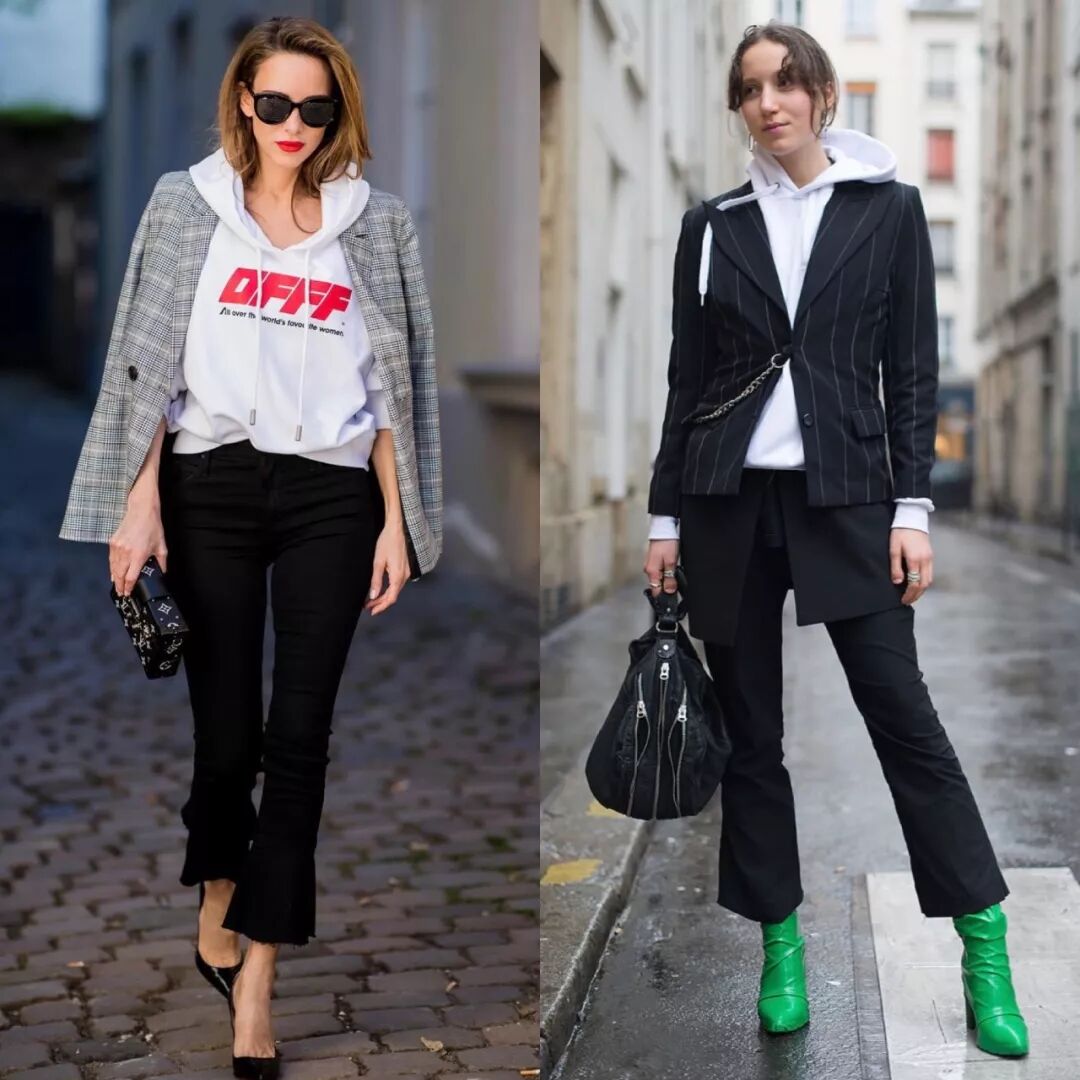 衛衣+西服外套的混搭集幹練與帥氣於一身。即使是這種偏嚴肅的傳統版型西裝,遇上衛衣之後也能時髦度迅速飆升。