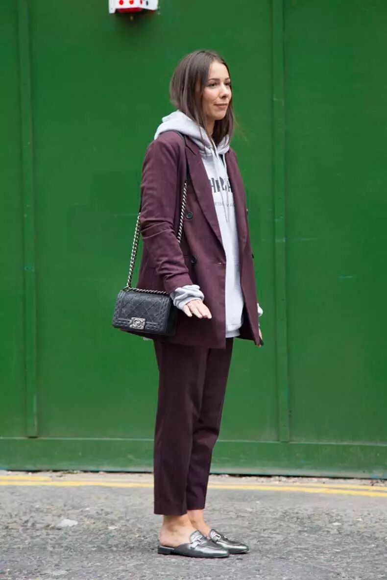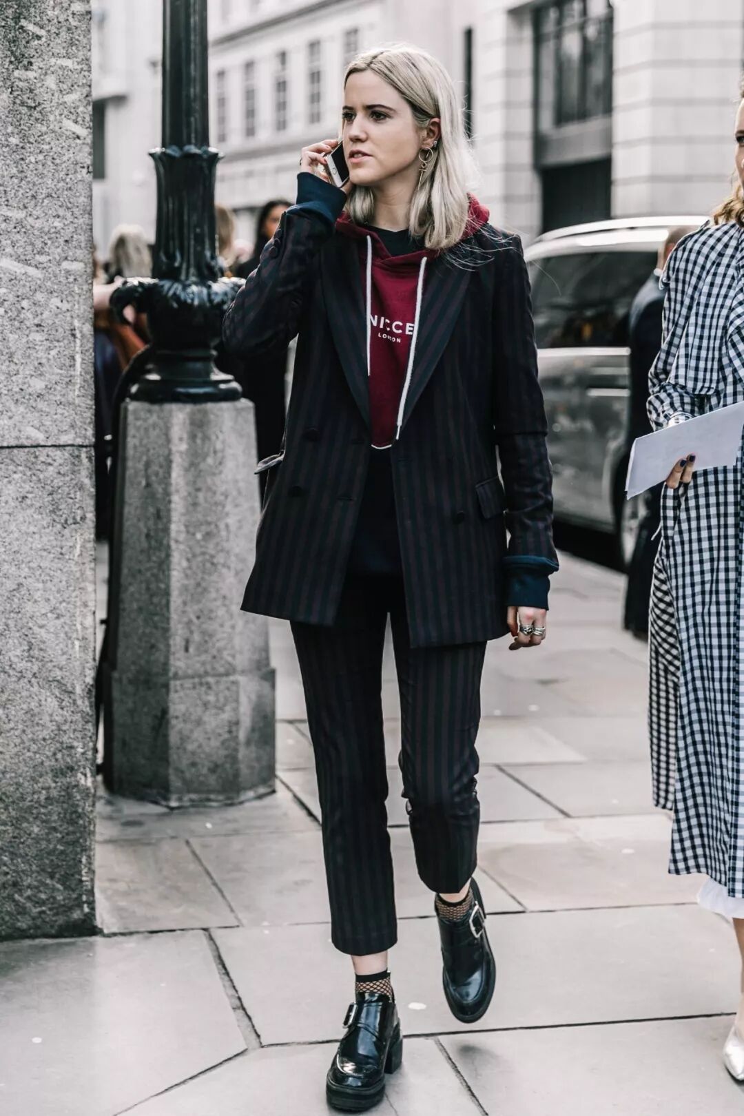 有了衛衣的相助,你甚至還可以挑戰西服成套穿的搭配,時髦與氣場並存,拉風吸睛極了。