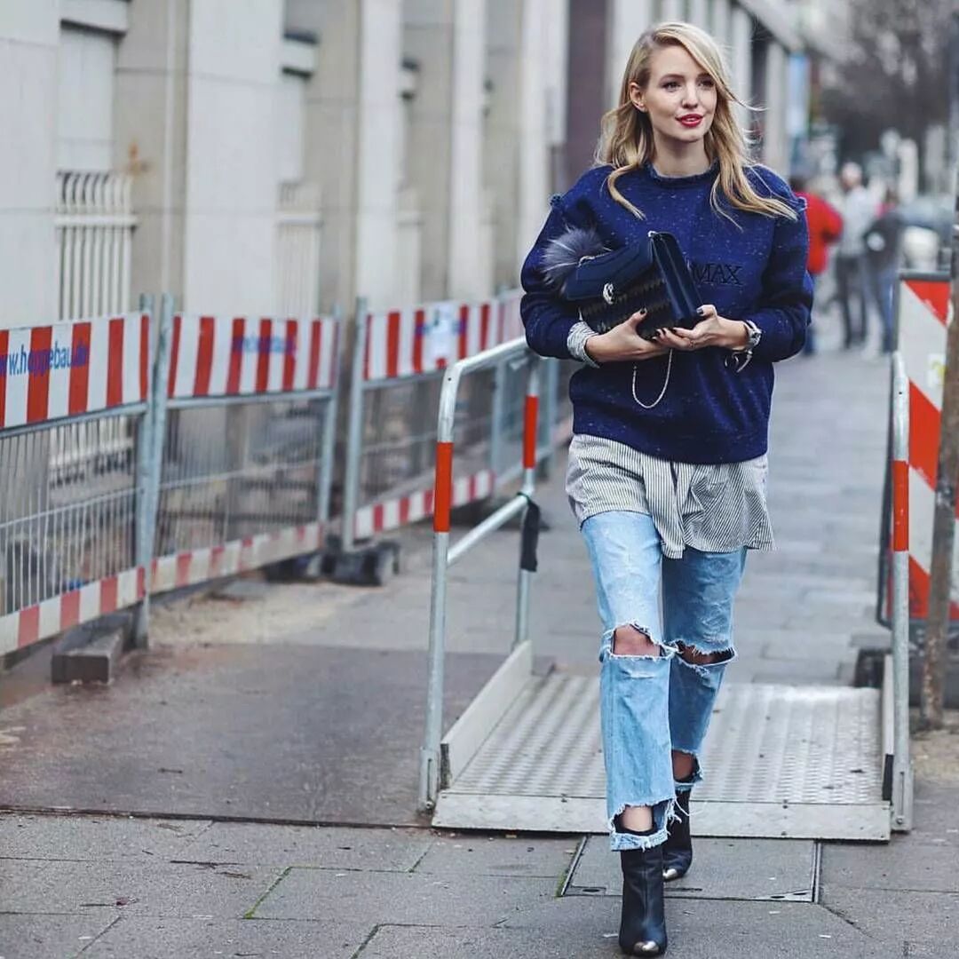 條紋襯衫本身就自帶時髦標籤,因此用它與衛衣混搭疊穿,整體的造型感還會更強烈,吸睛指數更上一層樓。