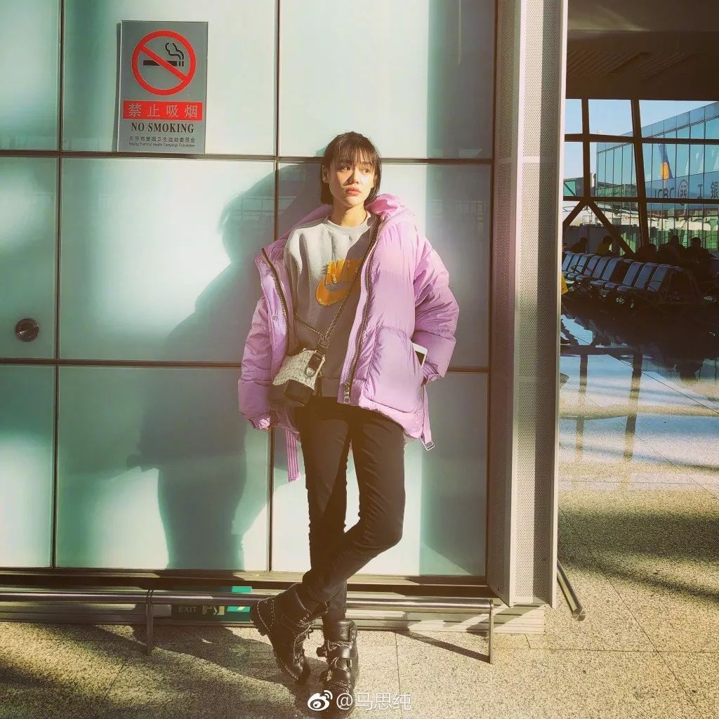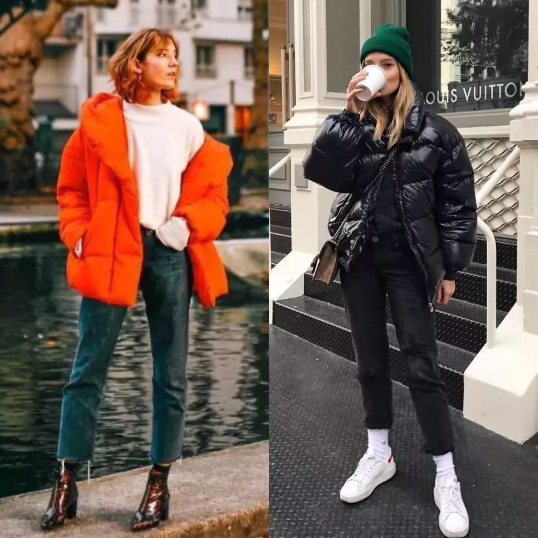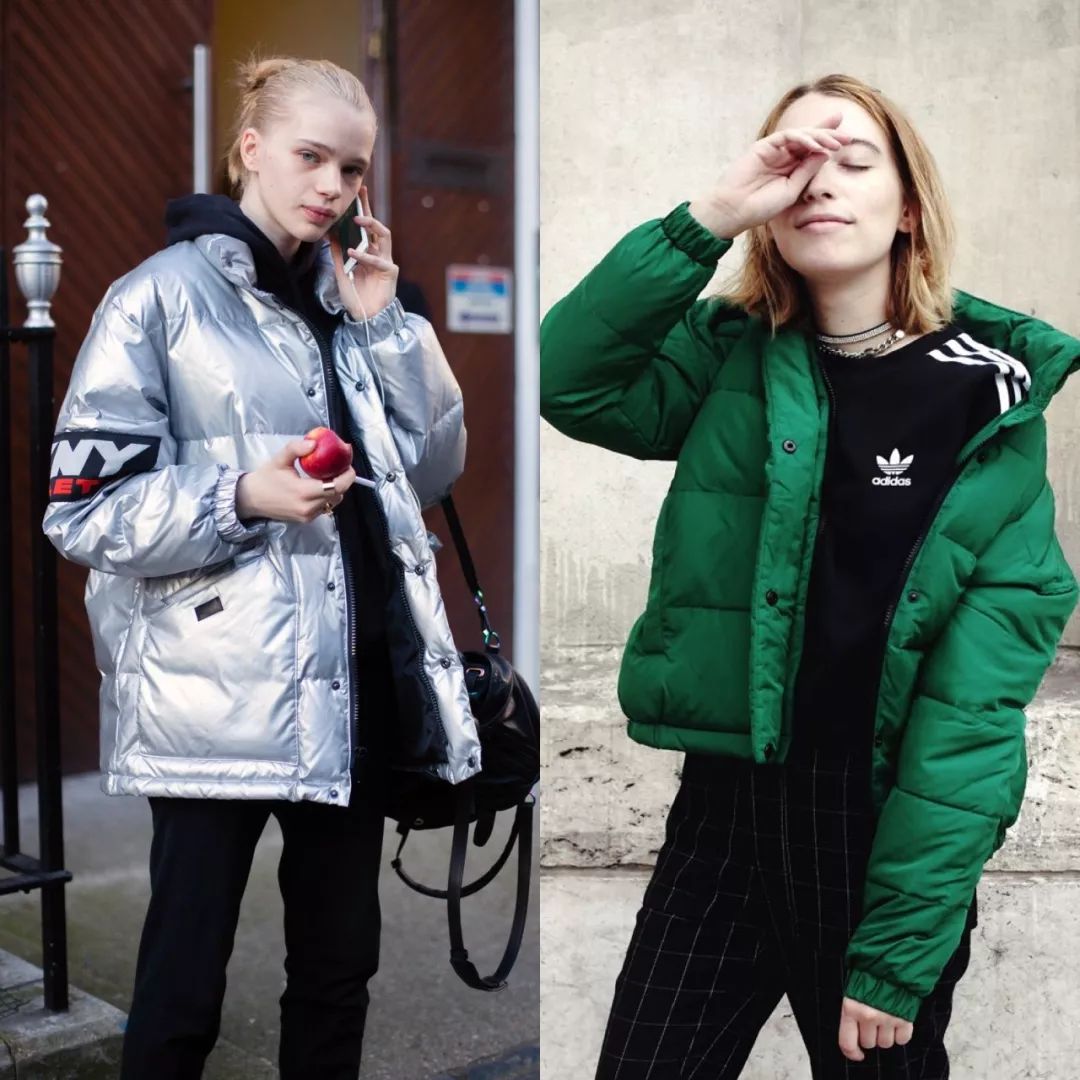 而樣式比較普通寡淡的基礎款羽絨服,則不妨混搭彩色or印花衛衣,便能立刻時髦到發光。