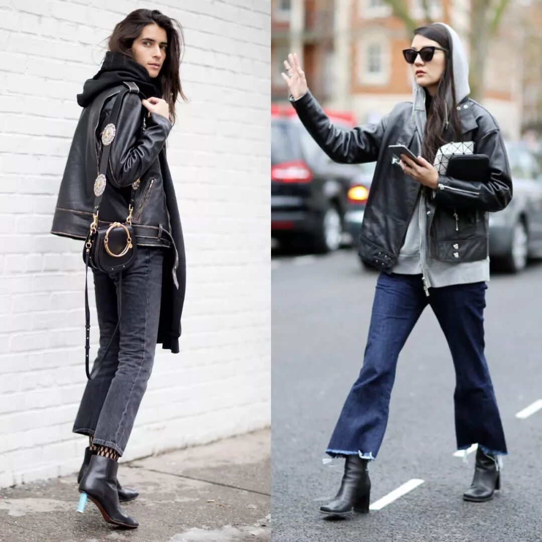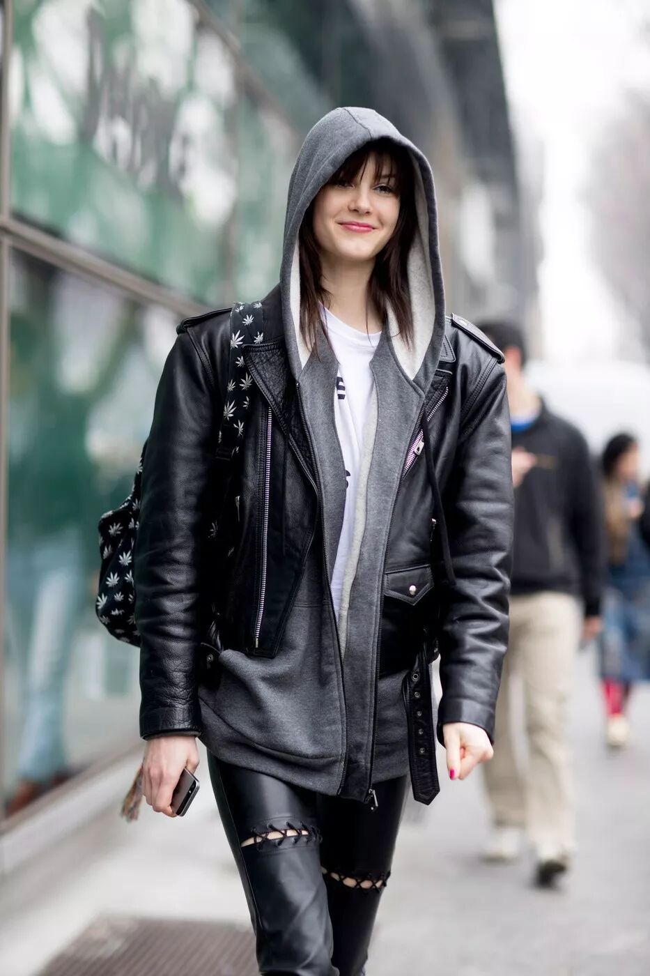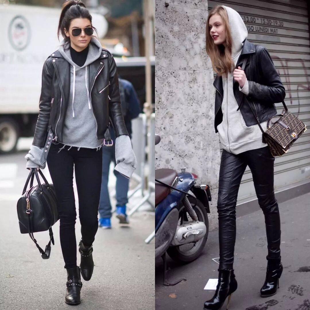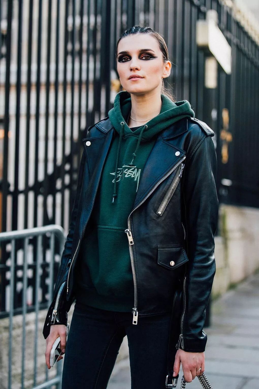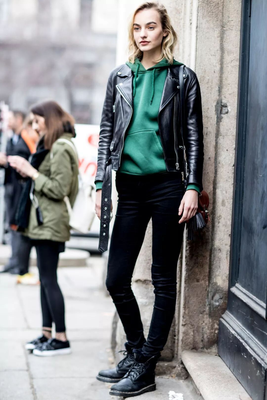 皮夾克+衛衣絕對是酷女孩們的秋冬出街標配,簡直帥過男朋友。