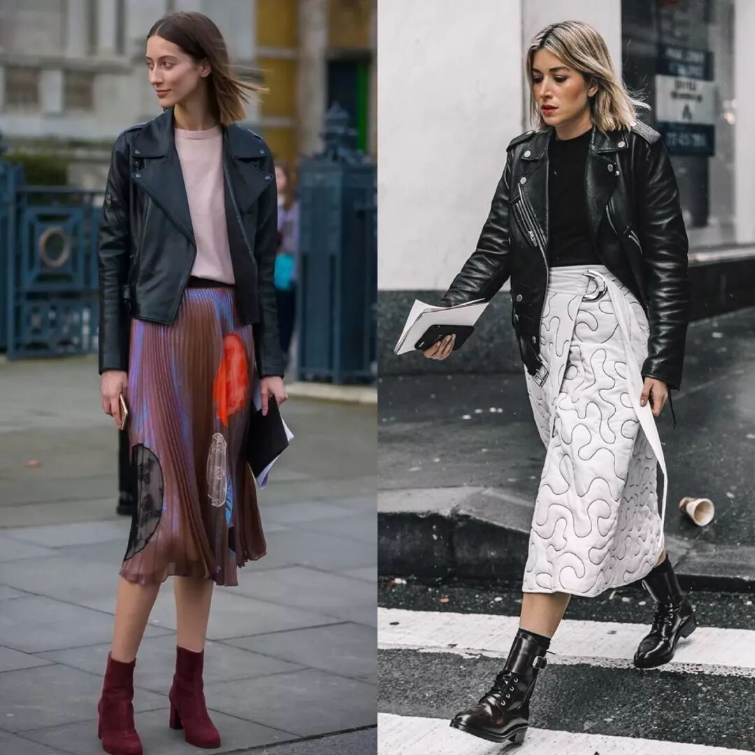 你也可以搭配裙子玩混搭,打造一種酷酷的性感魅力。