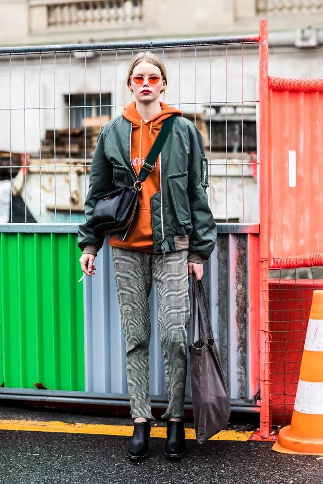 男友力max的飛行員夾克與中性風衛衣是絕配,又暖又潮助你帥出新高度。軍綠色的飛行員夾克是經典中的經典,用它疊穿連帽衛衣,在潮人街拍中一直都有著很高的出鏡率。
