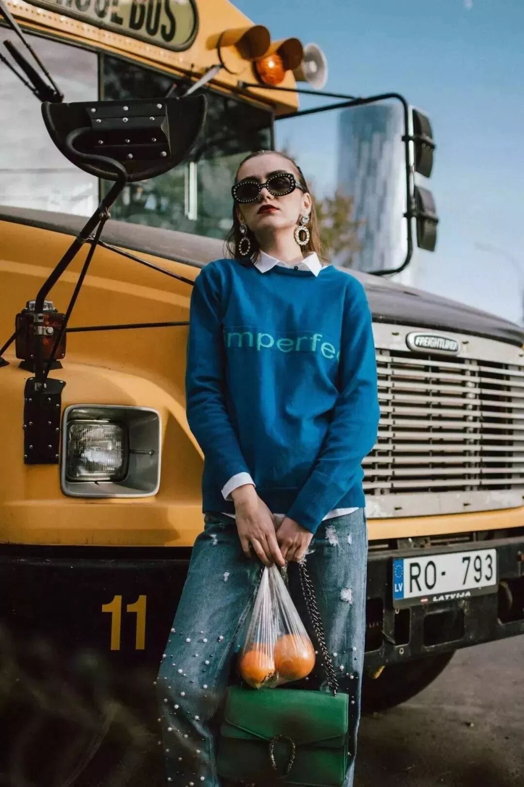 內搭亮色系的衛衣玩撞色,會更加搶眼吸睛。