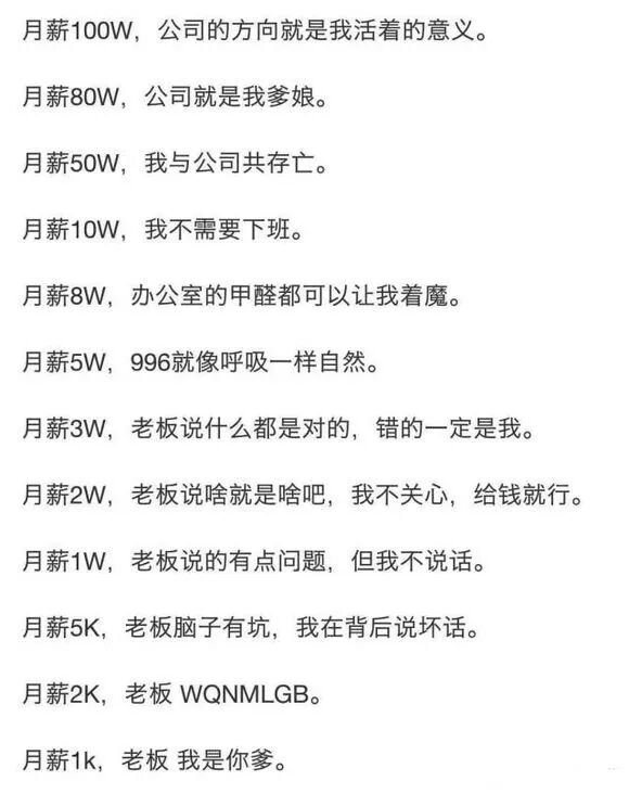 原來大家都是各有各的慘法……以及網傳月薪決定你對老板的態度,大家覺得準嗎?(溫馨提示,此圖請避開老板欣賞)