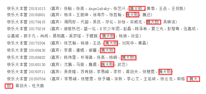 湖南衛視的其他節目《天天向上》、《向往的生活》、《幻樂之城》、《明星大偵探》、《妻子的浪漫旅行》等綜藝,也頻見魏大勛。