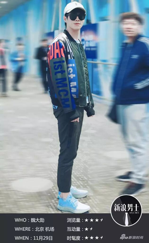 最近魏大勛出現在北京機場,示範了潮褲暖男穿搭指南。 軍綠色棒球夾克時髦力滿分,內搭Bally條紋白T。黑色Chocoolate束腳褲舒適又隨意,而白色adidas 球鞋與白色鴨舌帽上下呼應,運動氣息十足!