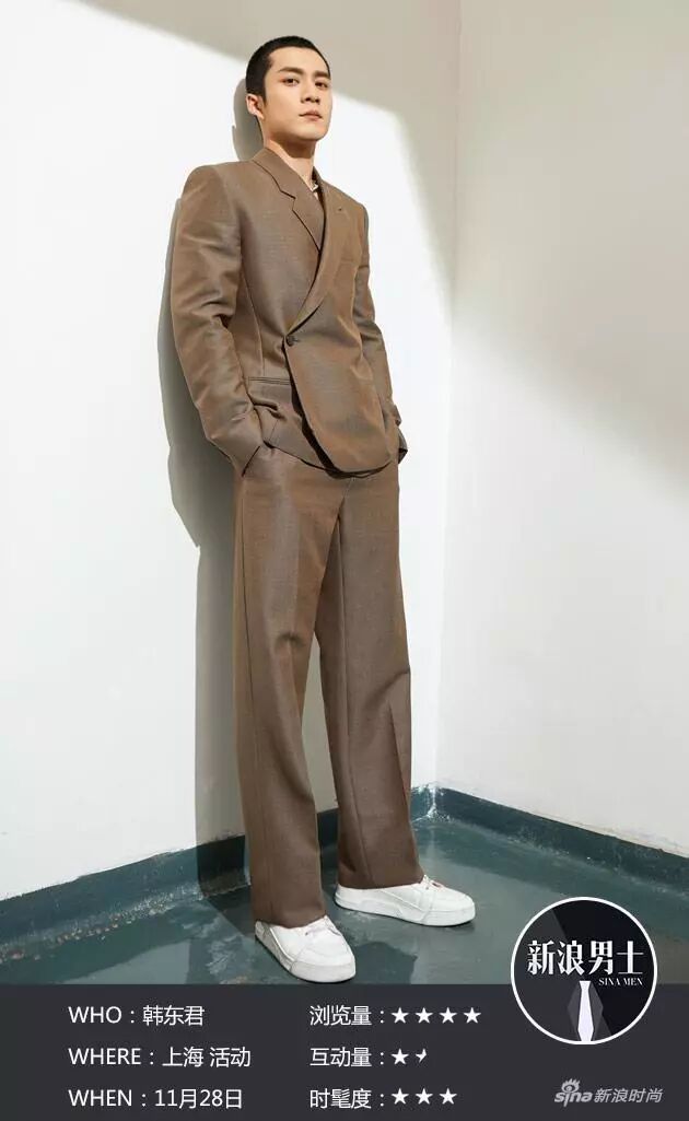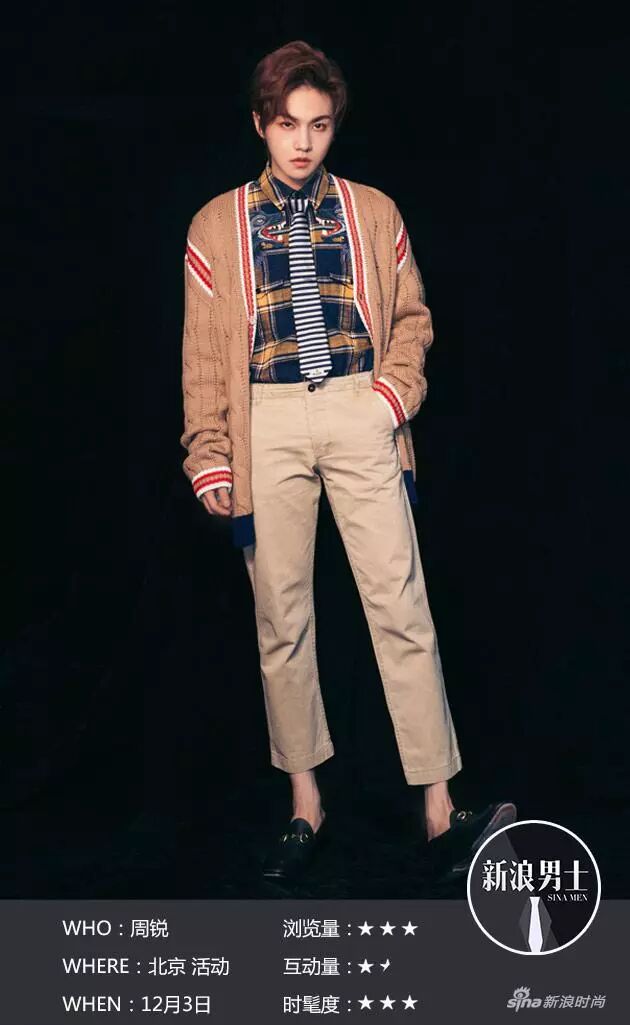 2:評分標準結合瀏覽量、互動量、時髦度三大板塊:瀏覽量為@新浪男士 官微閱讀數,互動量為@新浪男士 所發藝人微博的互動數(轉評讚均含),時髦度為品牌影響力及多位編輯綜合打分二者結合。