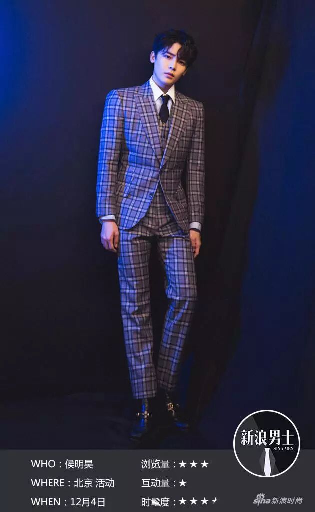 點評:侯明昊的這身經典的格子三件套完美演繹了紳士的品格,搭配他青春洋溢的臉龐,誰說紳士就是老氣。