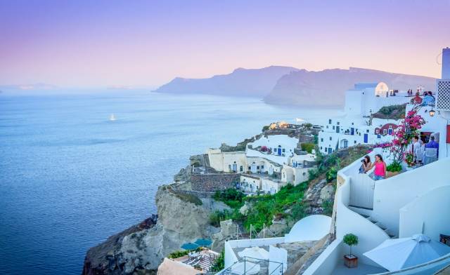 希臘的伊亞小鎮有著純粹的藍白顏色,被稱為愛情的顏色。據說,在這里看落日,別有一番風情。