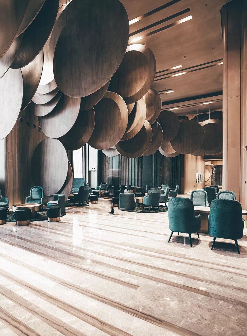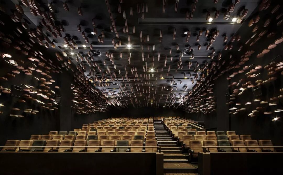 這是金賞中唯一入選的中國商業空間,由香港 ONE PLUS PARTNERSHIP 事務所設計。幾十個直徑 3 米的 「菲林圓盤」連綿不絕橫跨整個大堂天花,充滿前衛的視覺張力,靈感來源是為了紀念過去老電影院放映室里堆滿裝菲林膠卷的圓形鐵盒。