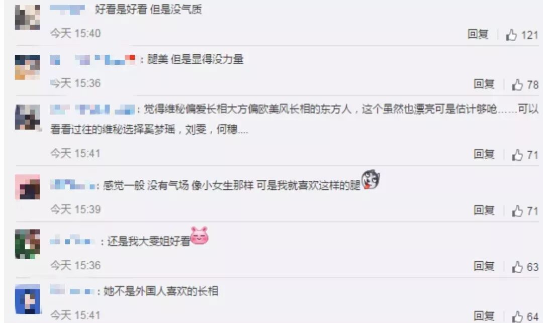然而大家對她的評價沒有很高,說她人長得不錯,腿也很美,但是顯得沒有力量、沒有氣質,難入維秘圈。