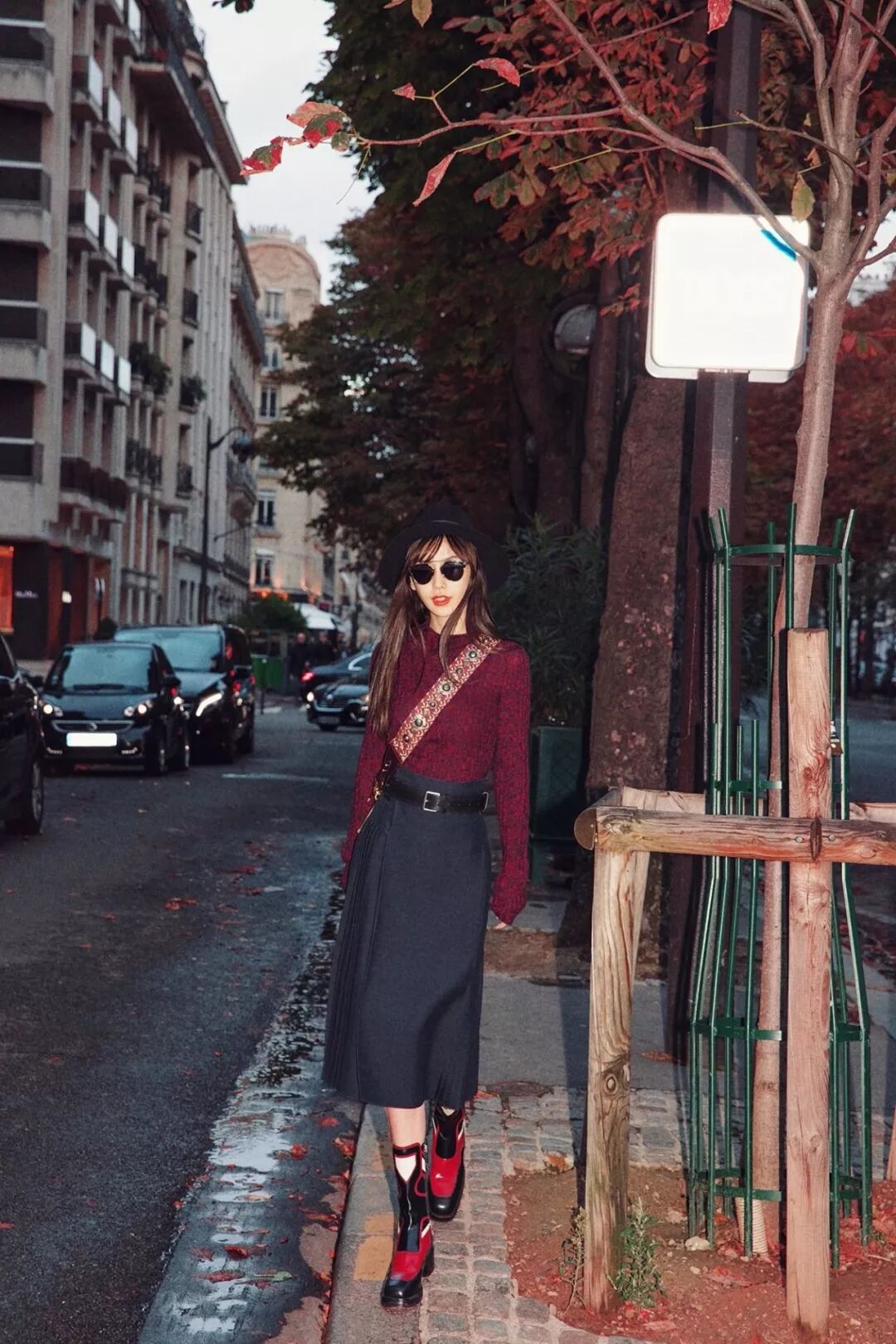 Angelababy征戰巴黎時裝周時,就曾以一雙拼色方頭裸靴傲戰群雄,紅色針織衫下搭Dior針織衫毛呢裙,色彩呼應下摩登復古架式一秒穿出來。