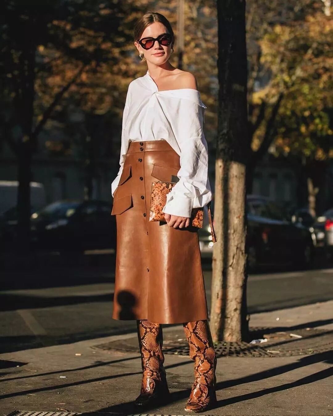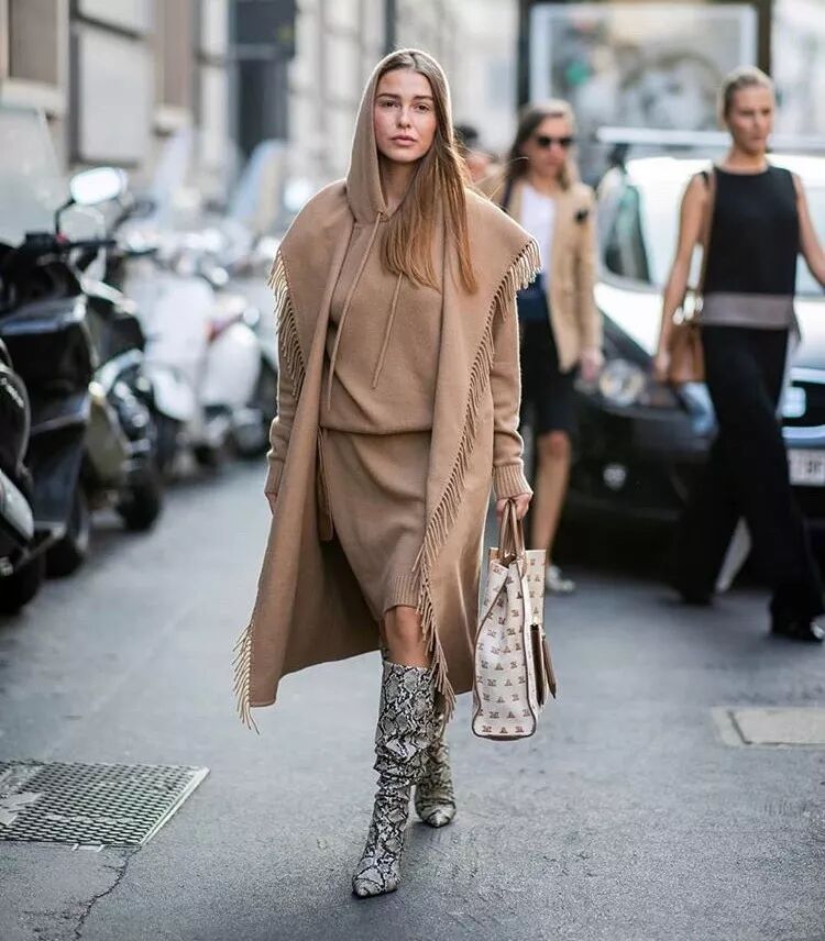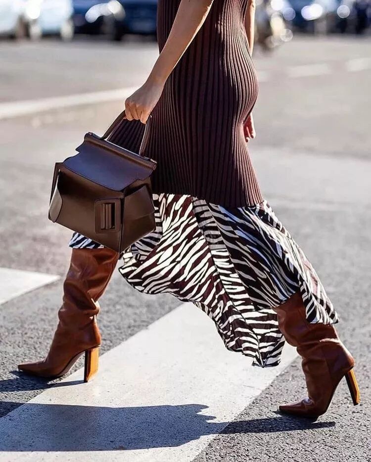 作為大熱的黑馬人物,蛇紋靴的時尚感有目共睹,搭配裙裝時的異域風滿滿,野性十足的迷人氣息,讓look平添幾分撩人質感。