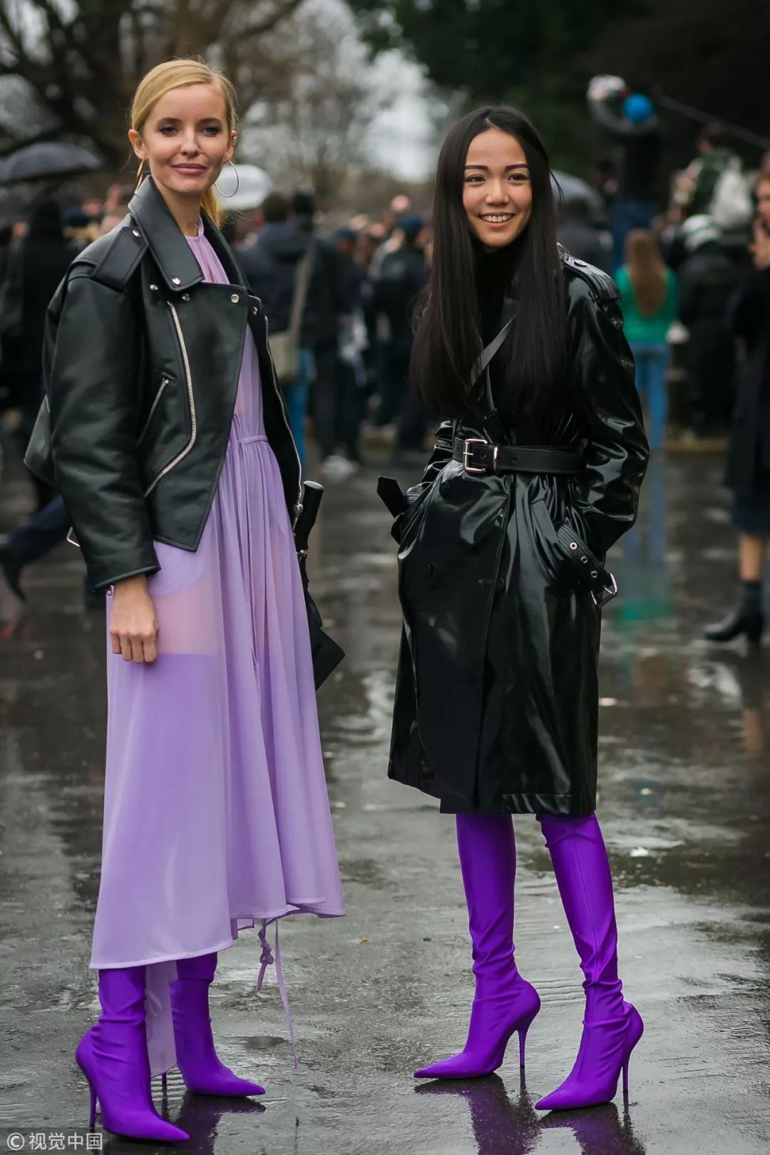黑白夾克固然不羈,但在色彩方面卻少了一份chic感,而潮色靴的大膽配色便可以為著裝贏得亮點,將有趣的色彩主義玩得更加大膽。