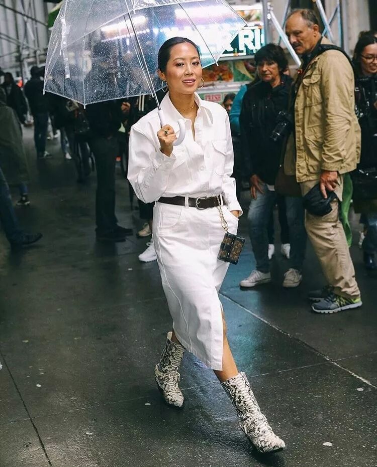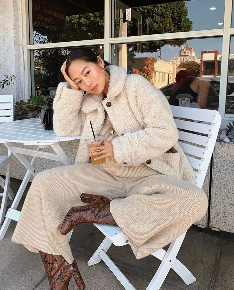 今年冬天與蛇紋靴癡纏過深的博主必須算Aimee Song一位,縱觀她的街拍,每逢五張必有一張是踩著蛇紋靴在公然示愛,可見她對這雙靴子重視之深。