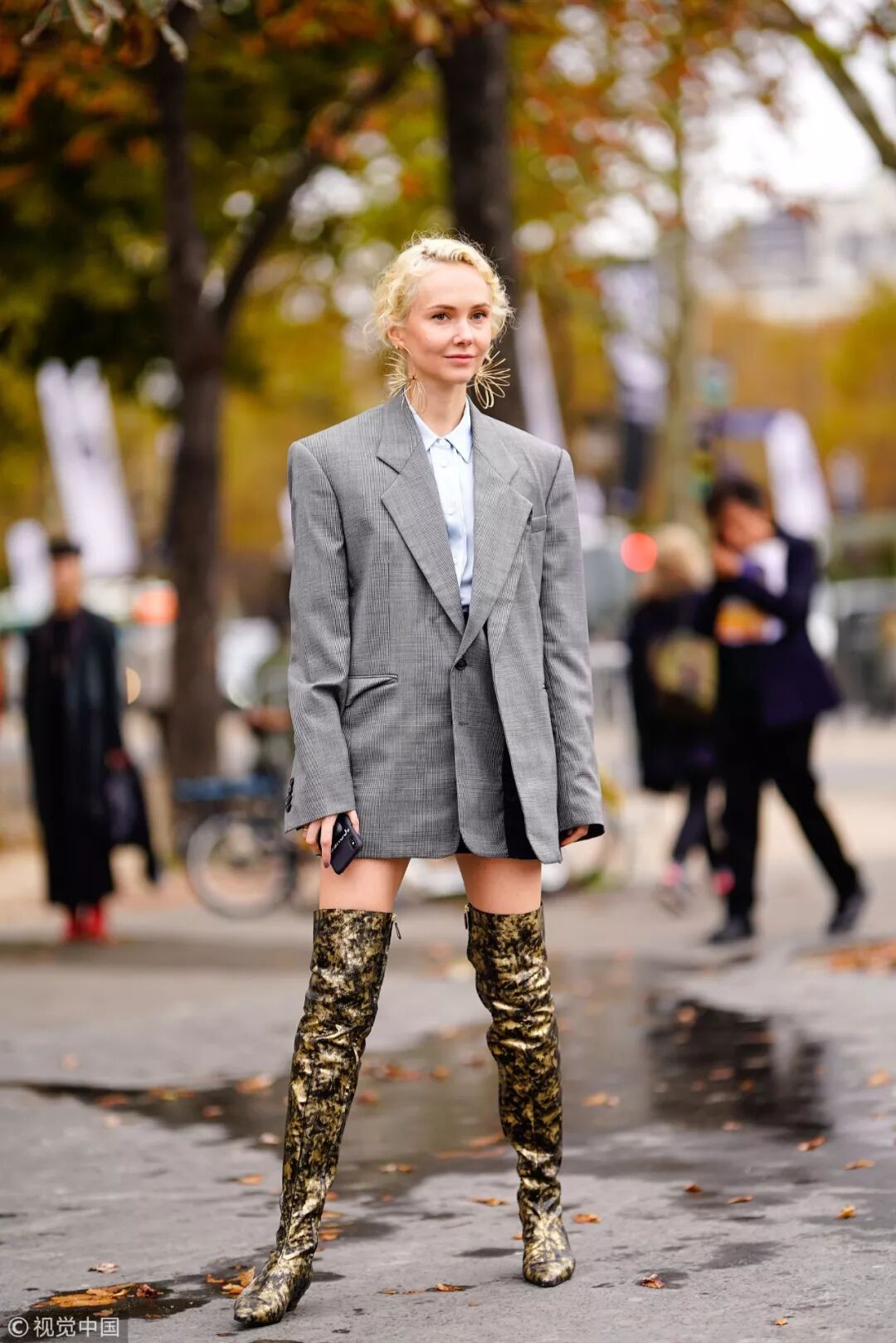 尤其這飽和度較低的銀色金屬靴,雖不比其他顏色搶眼,卻憑借低調百搭的氣質屢屢成為明星超模的愛將,極其適合我們的日常搭配。