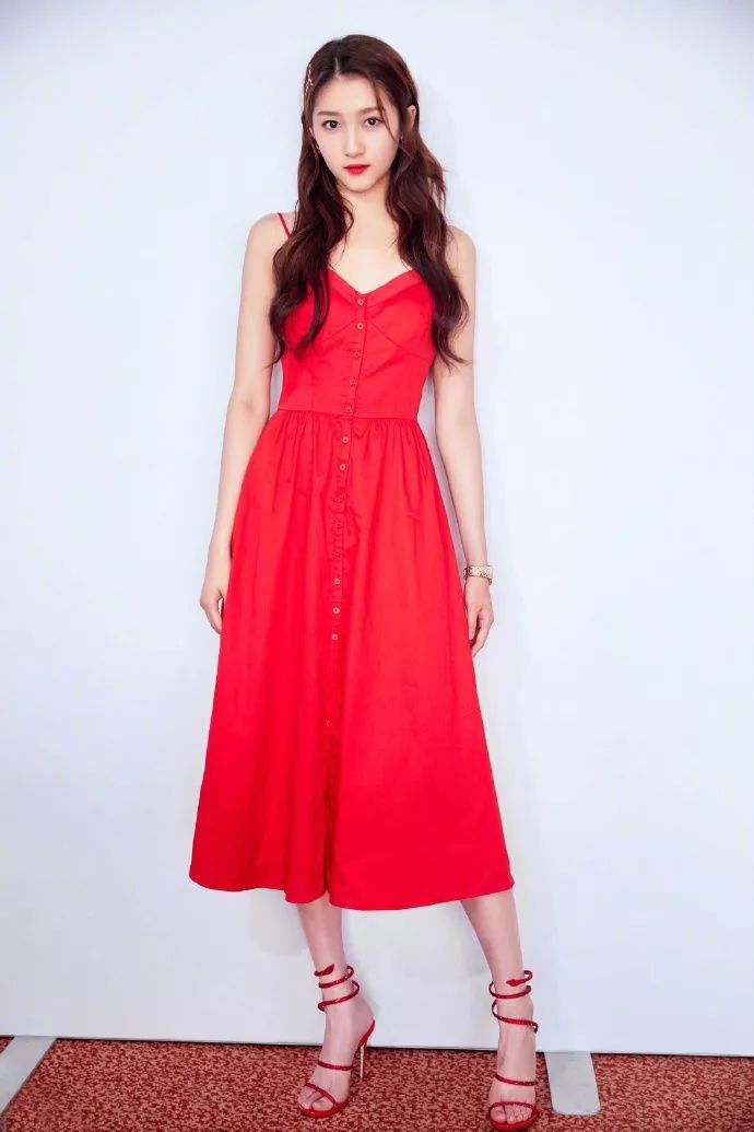 紅色不好駕馭卻意外的適合關曉彤,簡單的吊帶紅裙,搭配同色的高跟涼鞋,微卷的長髮披肩,少女的嬌俏里又有一分小女人的性感,可以說很美了。