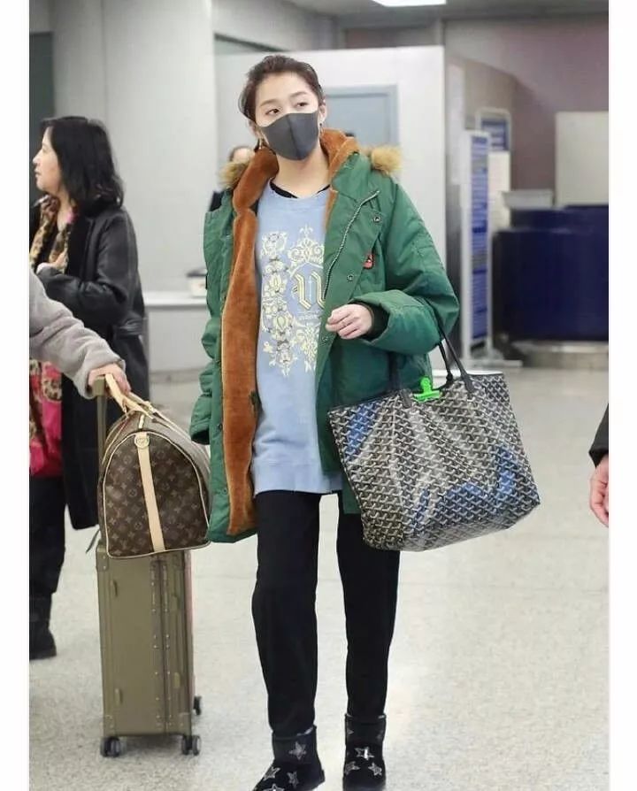 關曉彤的衣品真的有毒,綠色的外套搭配藍色的內襯,和肥大的黑色長褲,手里拎著大包,就像是買菜的大嬸一樣,真是白瞎了一張漂亮的臉。