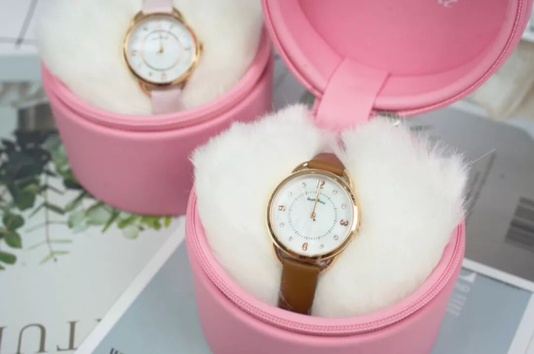 到了時間廊詢問後,八叔一眼就相中了這兩款Angel Heart腕表,一款裸粉色皮質表帶和一款暖棕色皮質表帶的腕表。不僅款式經典,還非常好搭配,最重要價格只需900+,毫不猶豫馬上入手!