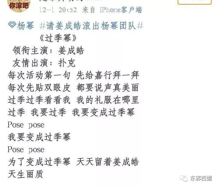 她們認為這全是造型師的錯,於是又是貼大字報微博,又是寫歌嘲諷。像下面這首詞,用火箭少女《卡路里》的曲調唱,倒也瑯瑯上口。