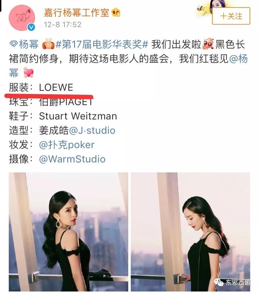 難道LOEWE沒開官微?搜了搜,明明有啊,但上面沒有關於楊冪華表獎穿它家禮服的微博。