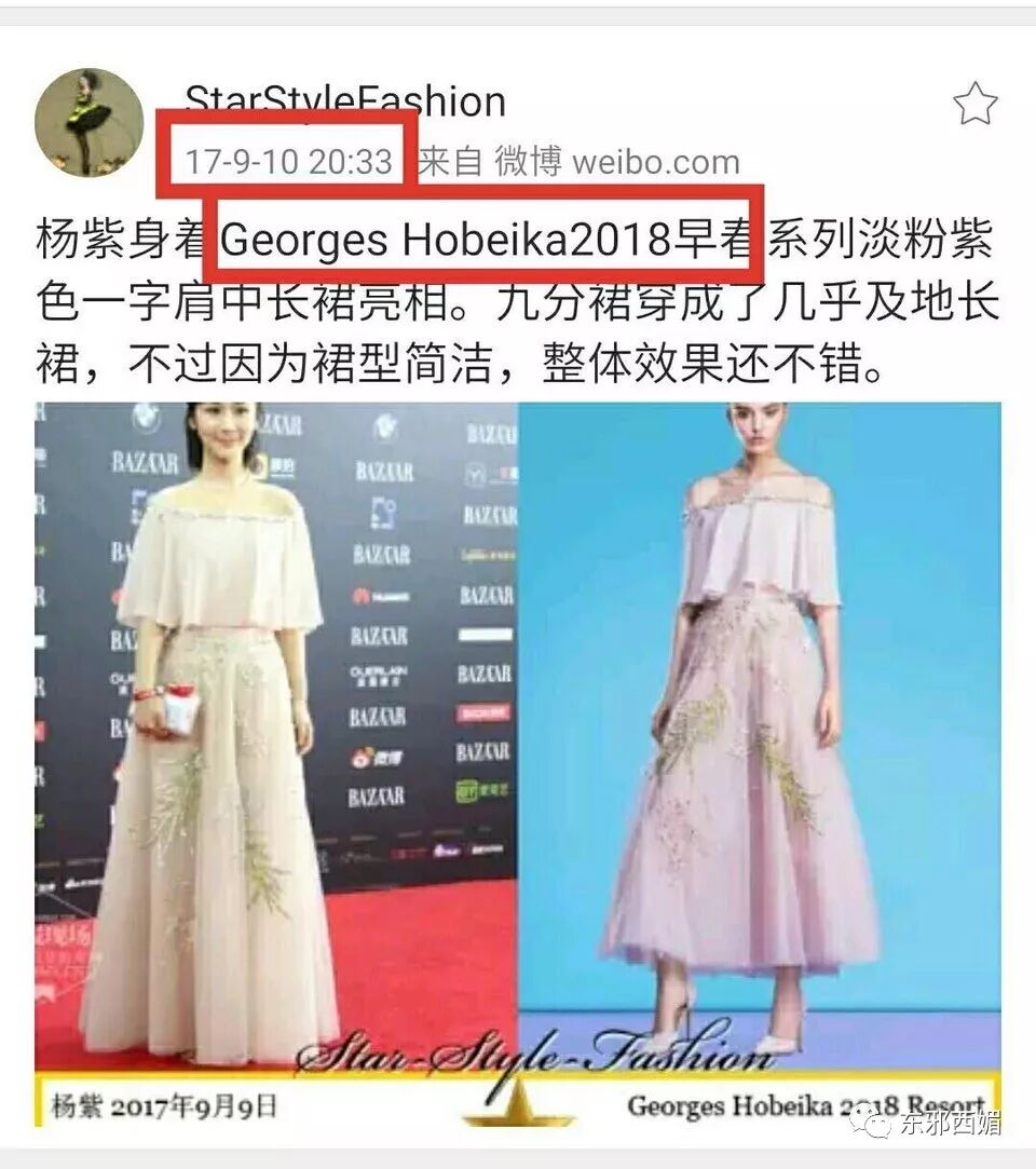 首先這是早春過季款;而更讓粉絲抓狂的是,楊紫早在2017年9月就穿過這個牌子的早春款了,按飯圈的話說,大冪冪被90後小花吊打了。