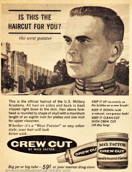 平頭等短髮髮型也推動而髮膠的銷量,當時的男士理容品牌多以士兵作為廣告模特