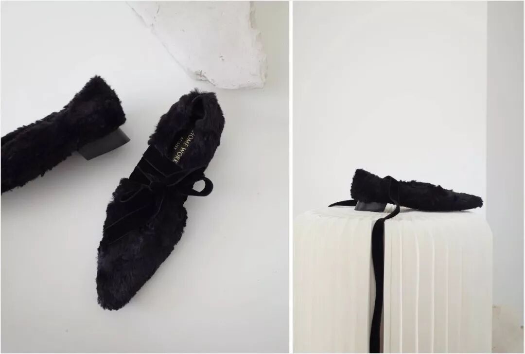皮草單鞋絨絨的質感很可愛,特別適合冬天,我見過別人穿的那種毛毛鞋膨脹的太誇張,而這款鞋的毛膨脹得剛剛好,顯得腳踝纖細。