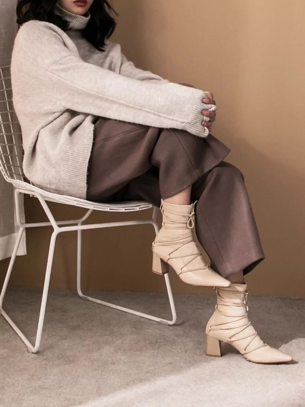 這款粗跟短靴真的設計感滿滿,前面的綁帶設計讓這雙鞋看點十足!筒高的長度剛好是最顯瘦的位置,小仙女們千萬不要放過啦!