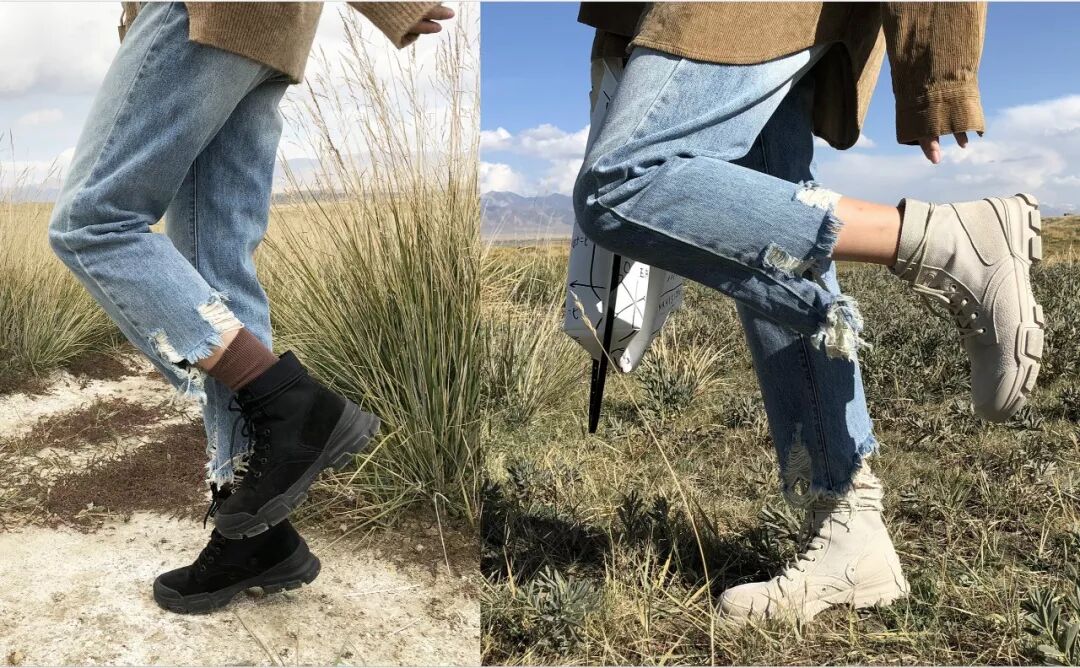 這款做舊做臟牛皮馬丁靴給人感覺復古又高級,綁帶設計更使這雙鞋子具有獨特感,它有三種顏色:黃色吸睛,黑白兩色百搭。