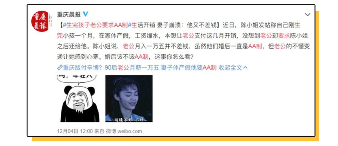 一則關於夫妻 AA 制的帖子引發網友熱議。