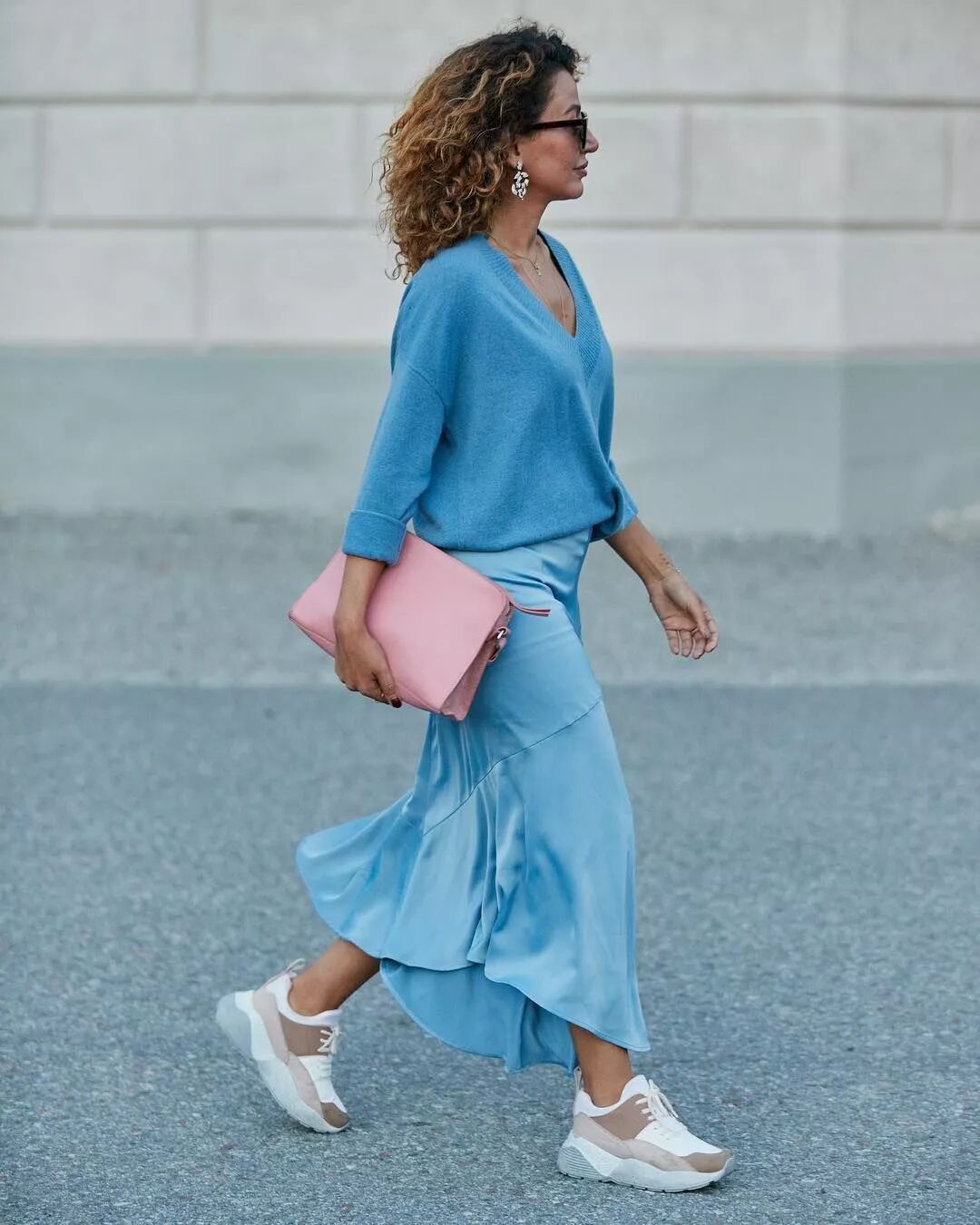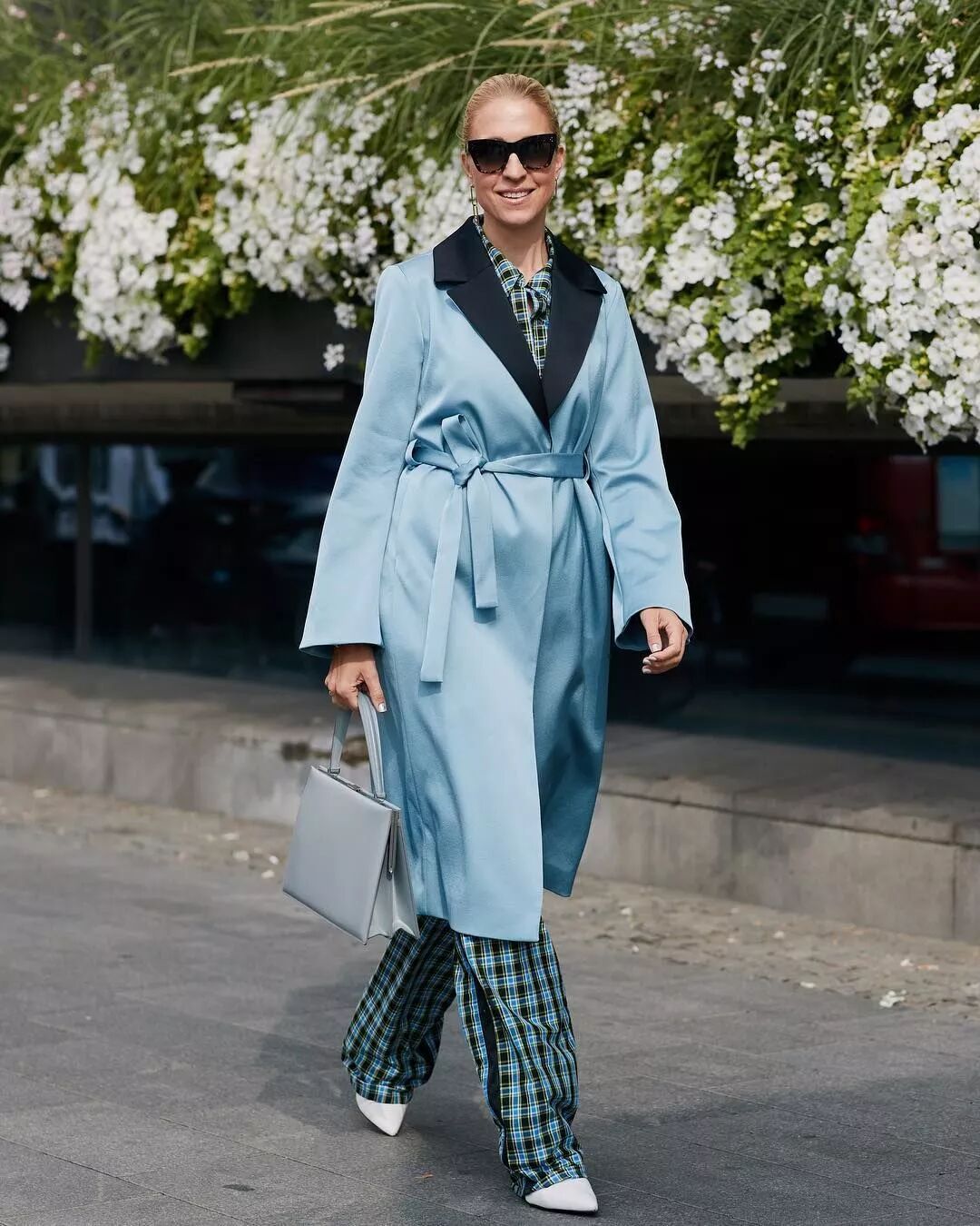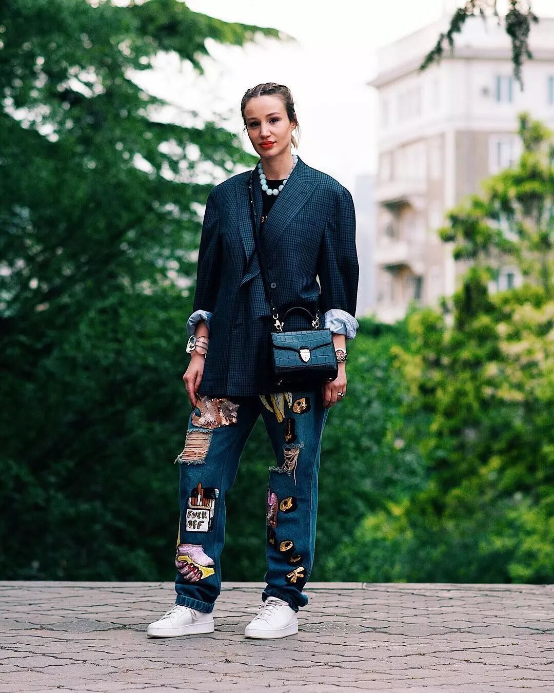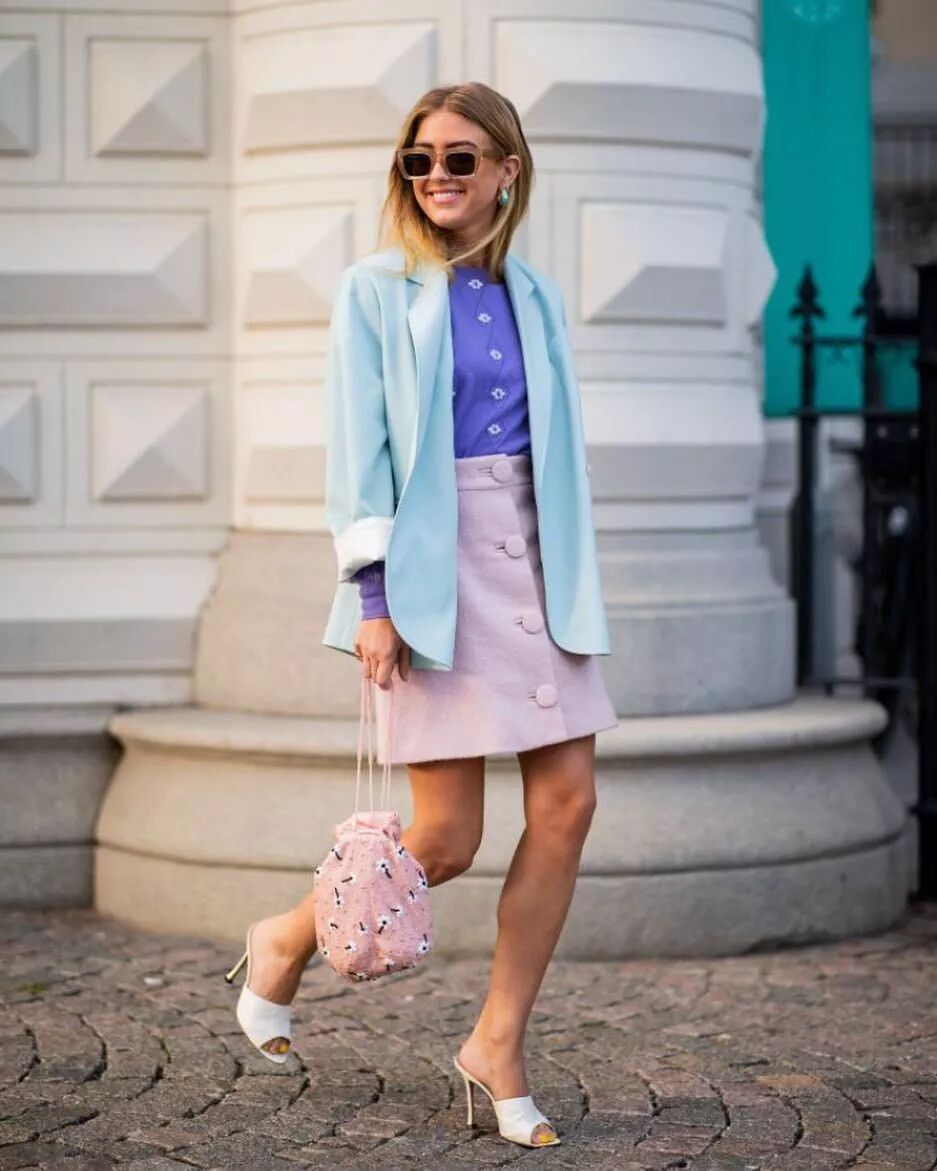 類似的上裝和下裝是同一色系,但色彩的明度和飽和度不同,搭出層次感。這種搭配簡單,也不會顯得很單調。