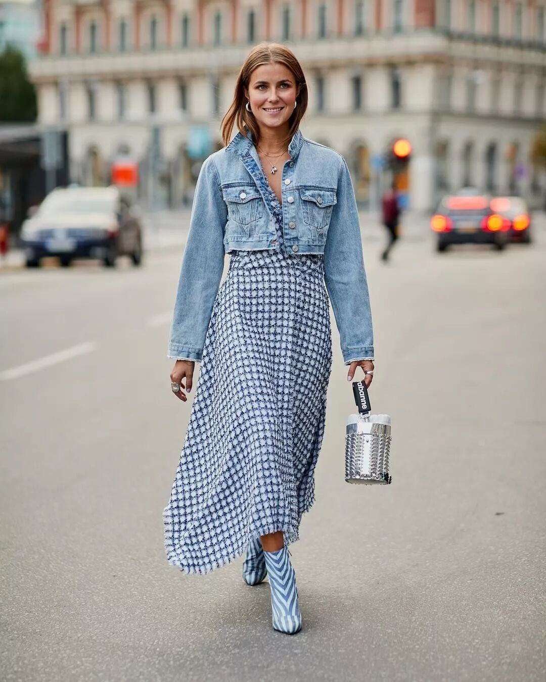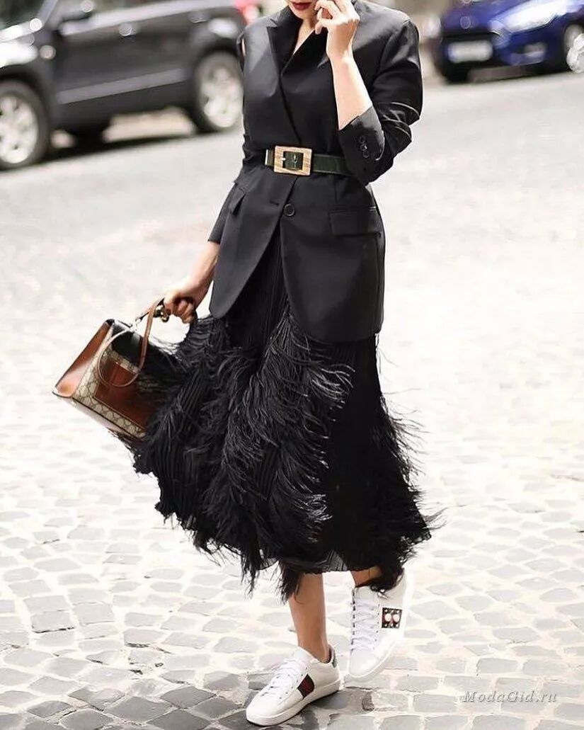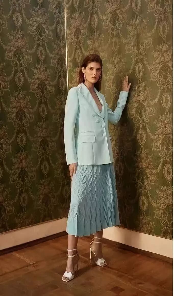 這一條裙子就足夠吸引眼球了,再加上束腰西裝外套,更加幹練。