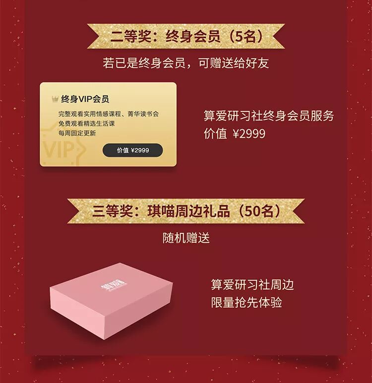 續費、升級、購買會員(算愛研習社/讀書會),均可享受立減優惠,獲贈2019限量版人生月勵,還能參與史上最大力度的抽獎活動,獎品拿到手軟!