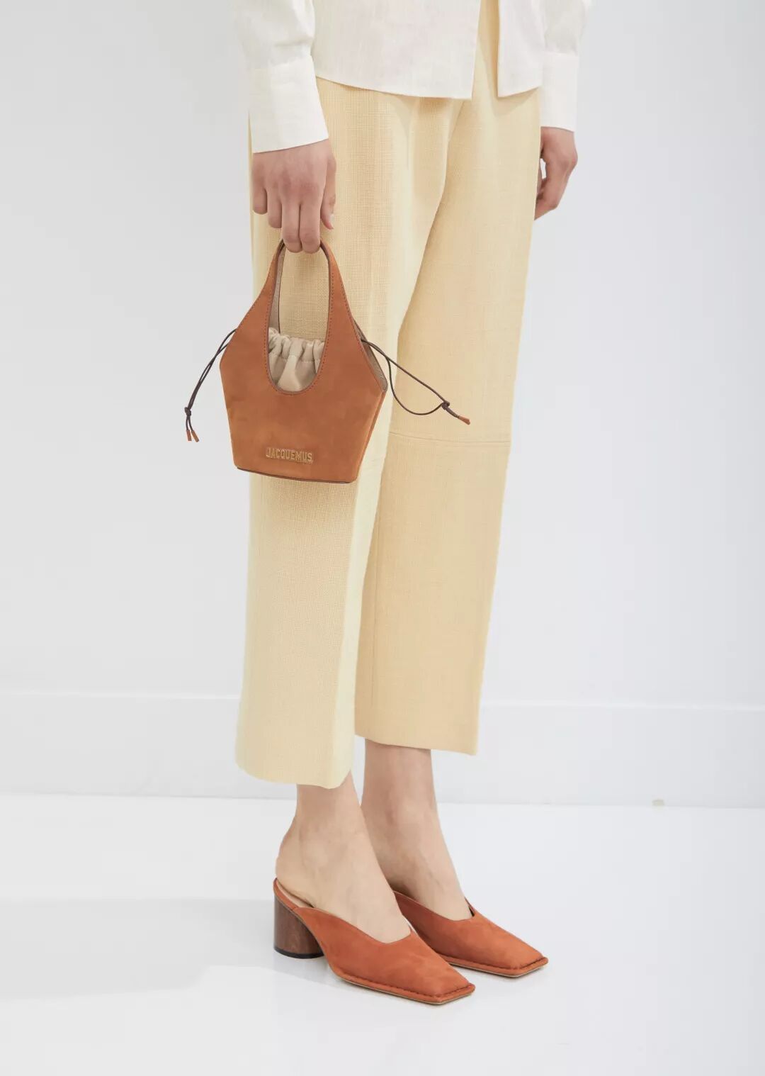 在迷你包包上,法國品牌Jacquemus可謂是把它做到了極致,那就是讓它——形同虛設,今年春夏品牌新出的手提包小到跟錢包差不了多少,連個手機都放不下,最多也就放兩支口紅吧…