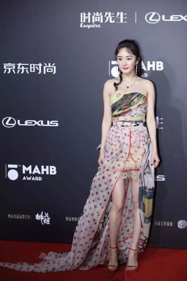 中國風的長裙,本來就很特備有個性,加上楊冪完美身材的修飾,確實美得讓人心動呢!