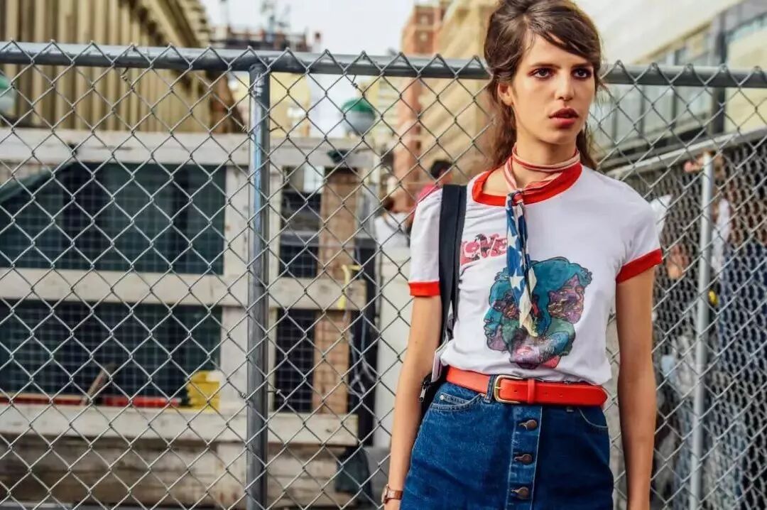 第一個就是A字裙,這個可是在半裙界中有著很高地位。T恤+牛仔A字裙,真的超減齡,糖糖看上去真的很很可愛呢。