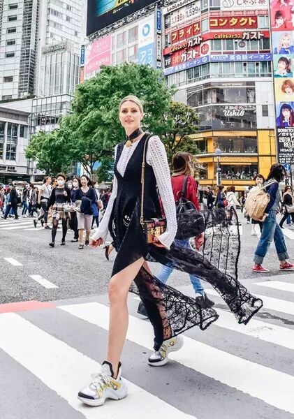 連我們薇姐也不能抵擋住它的魅力呀,off white半裙加上運動鞋,滿滿休閒感。