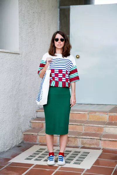 大家也是對A字裙十分喜愛啦,搭上T恤上衣,優雅又不失俏皮感。