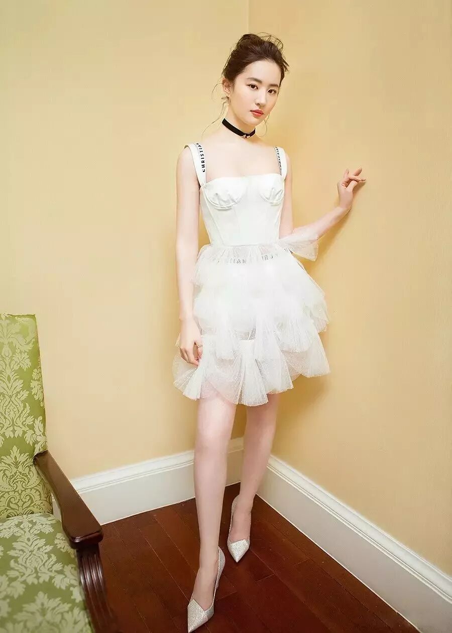 真不愧是神仙姐姐,白色吊帶紗裙,腳踩尖頭高跟鞋,神仙味十足。劉亦菲真的超適合呢。