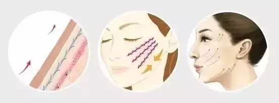 常用的方法是線雕(埋線提升),將線埋置於脂肪層(SMAS 淺層),通過物理方式把下垂的皮膚「拉」上去