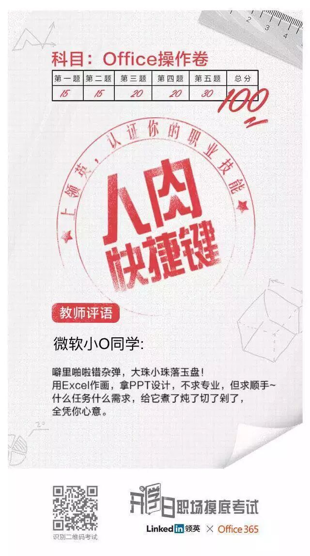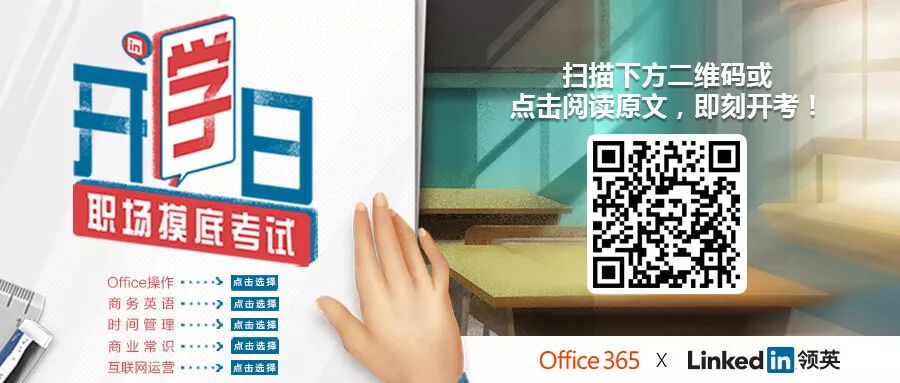 趁著開學季,為了鼓勵職場人不忘學習幹勁,不斷提高自己的職場競爭力,Linkedin領英攜手Office 365與其他精英品牌傾心推出了一份摸底試卷,你究竟是「全靠一張臉」的職場「菜鳥」,還是隱藏的「人肉快捷鍵」,一測便知!