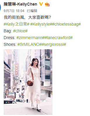 除了保養得好,陳慧琳的私服水準也十分在線。在微博上常常以#kellystyle#為標籤,記錄自己的穿搭,是真正會穿的。